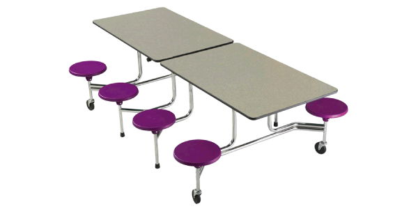 Some schools use the cafeteria for other events and activities. For such canteens, the best furniture is mobile tables with benches. These lunchroom tables can be folded and then stored safely elsewhere while the space is utilized for other events. These tables come with a locking mechanism that keeps them secure while in storage. Again, these mobile tables with benches come in: